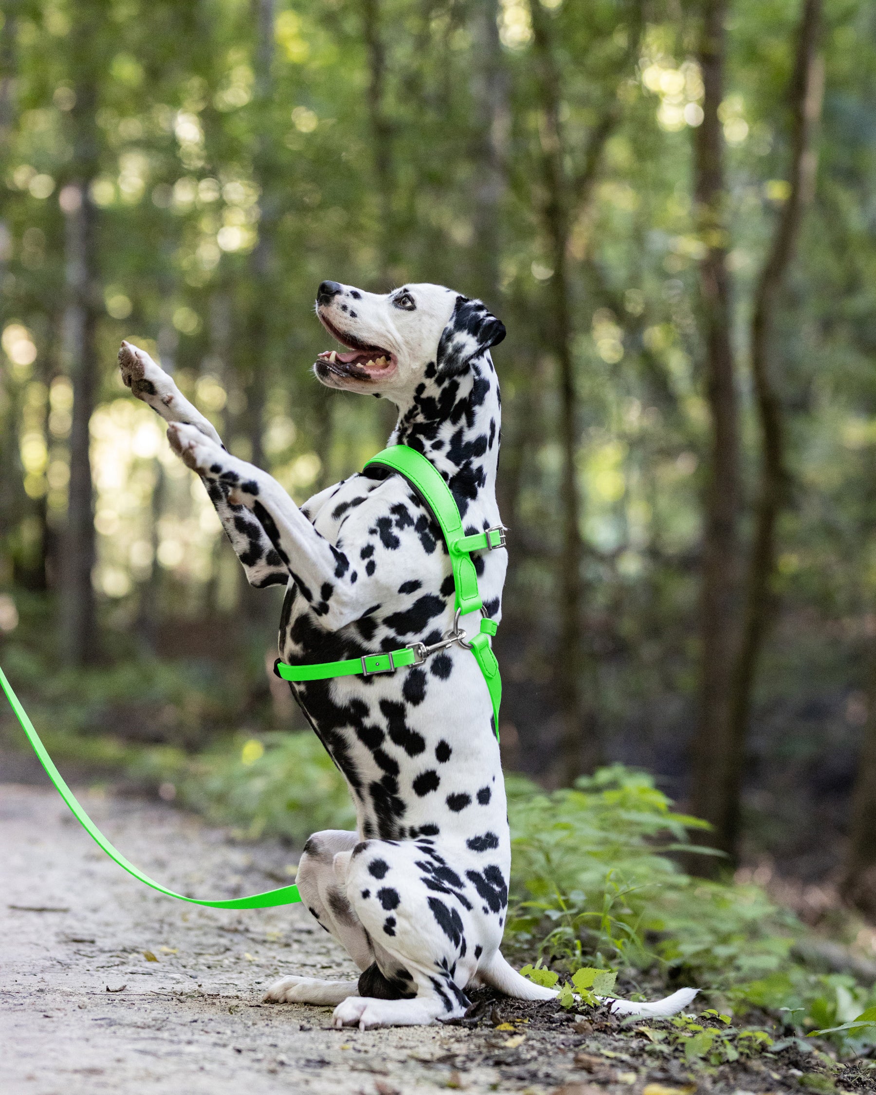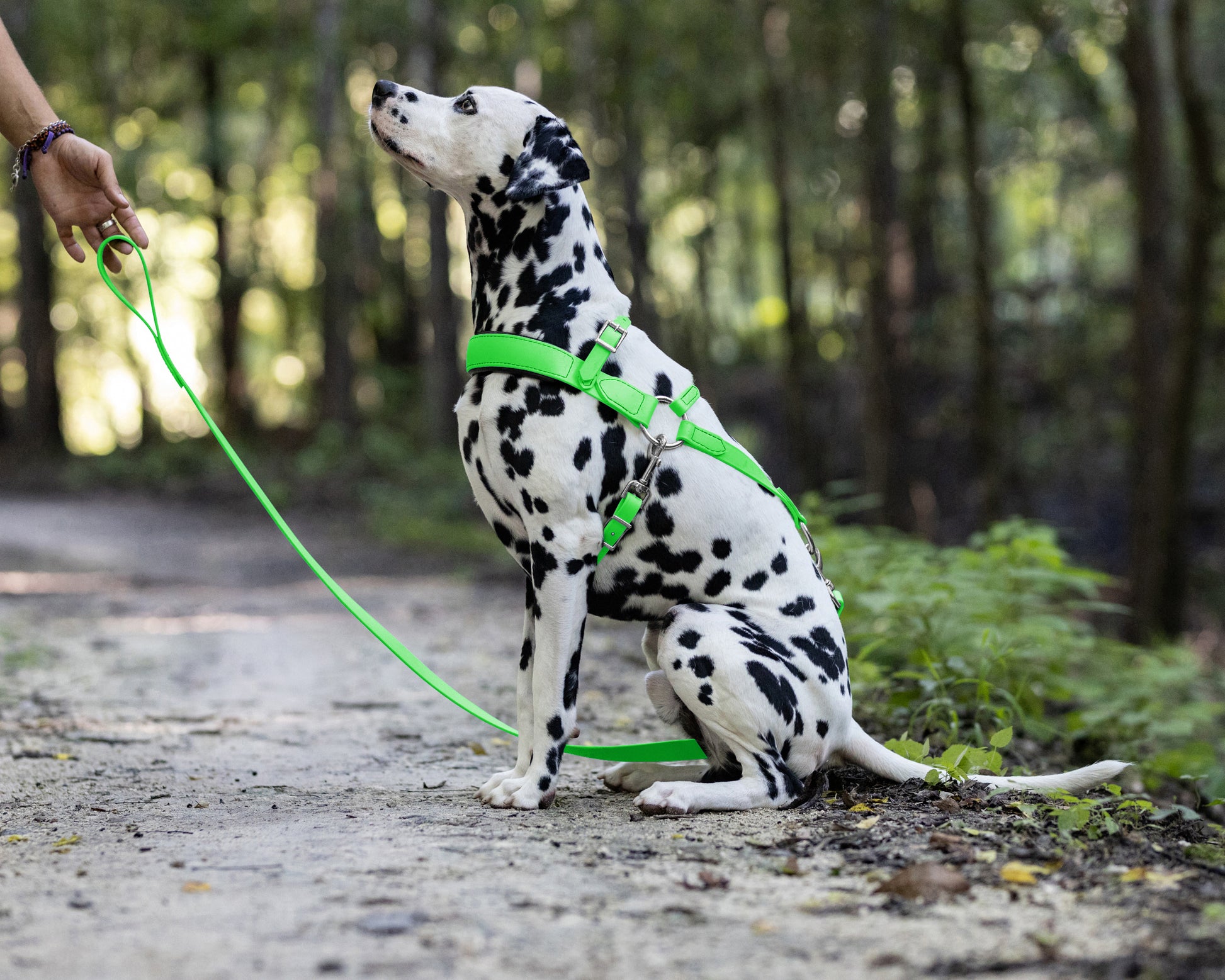 These roading harnesses are easy to clean, and won't stretch or fade like nylon or leather harnesses. Beta biothane is waterproof and can be cleaned with soapy water to keep dirt and stink at bay.